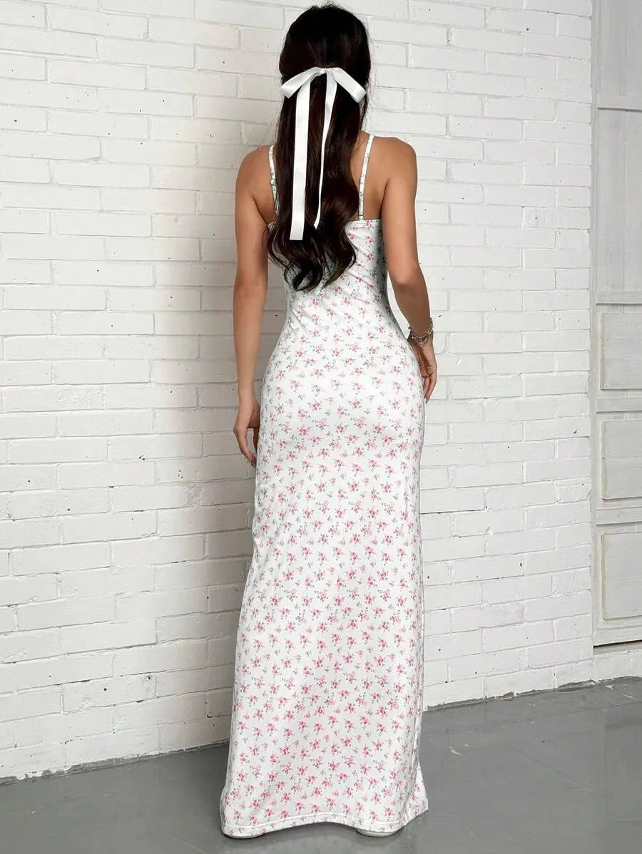 This women's baby blue ditsy floral dress features delicate spaghetti straps and a side slit hem, combining elegance with comfort. Crafted from lightweight, breathable fabric, it offers a breezy fit ideal for beach days, casual outings, and outdoor events. The slim, flattering silhouette enhances your shape while keeping you cool and stylish all summer long. Easy to care for with machine wash or professional dry clean options, this dress is a versatile choice for vacation and warm-weather wardrobes.